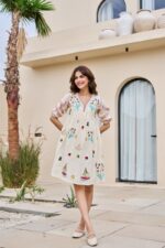 Home Women Dresses Cotton Embroidered Mini