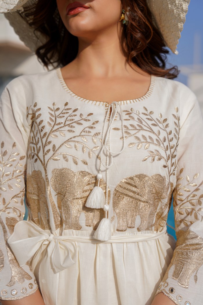 Pure Cotton Embroidered Midi