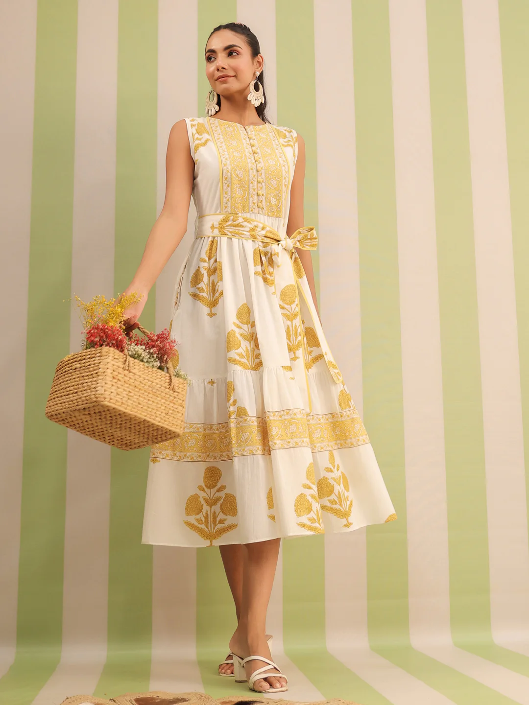 Home Collections Hand Block Print Series Pure Cotton Hand Block Print Midi with Belt