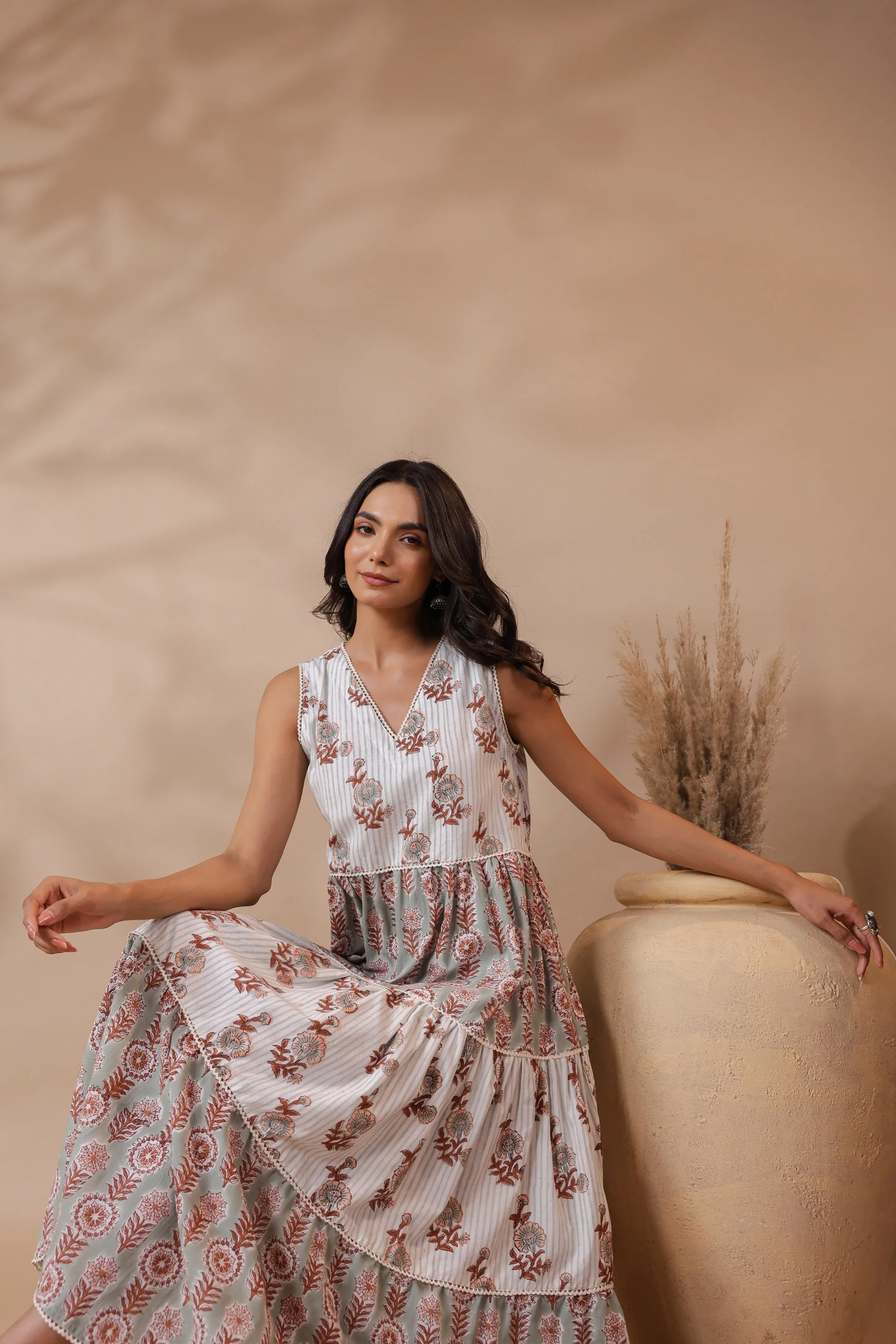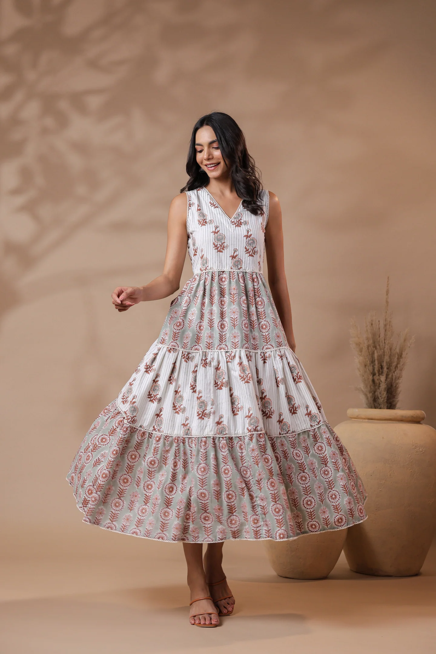 Home Collections Hand Block Print Series Pure Cotton Hand Block Print Tiered Midi